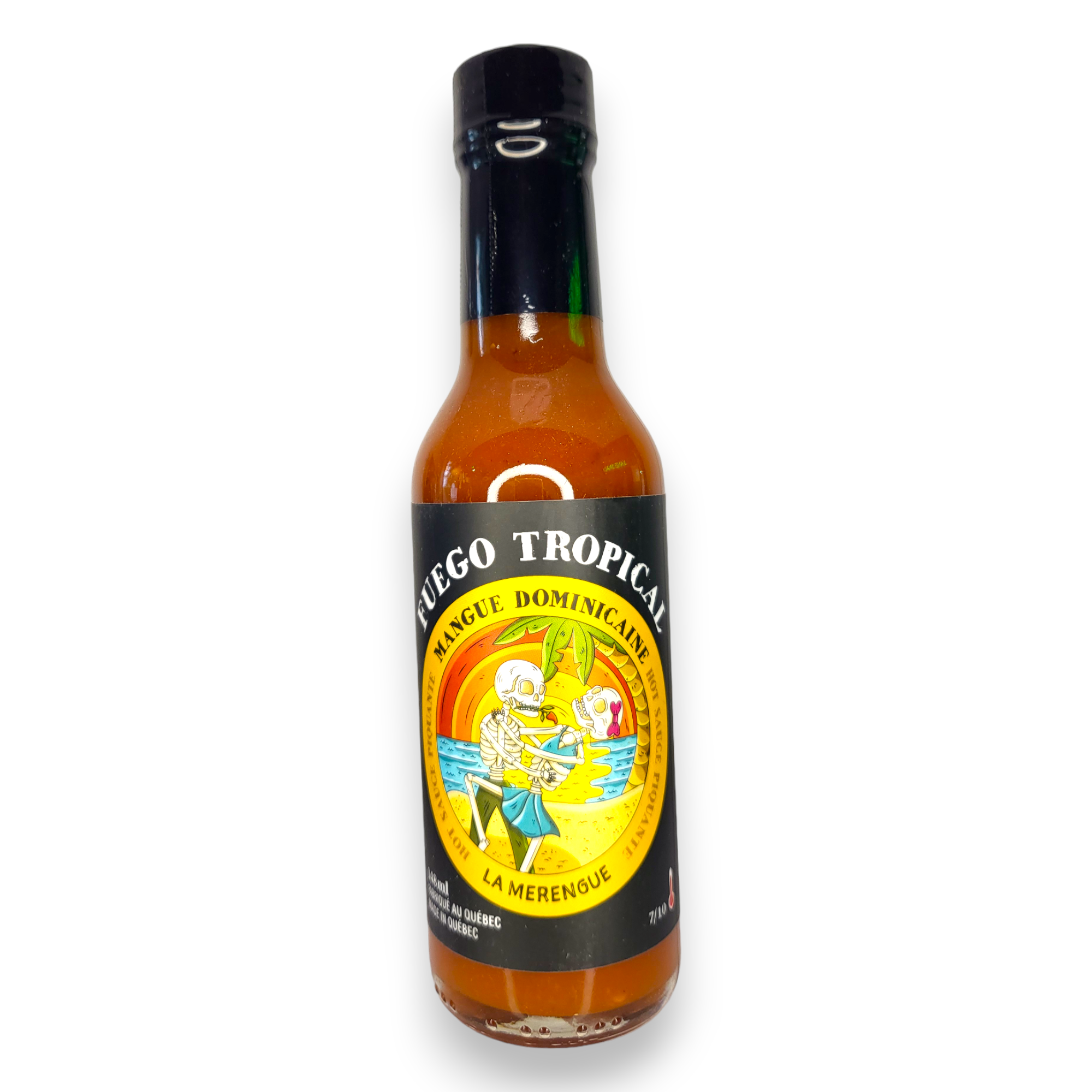 Cette sauce comprend des piments Habanero combinés à de l'extrait de piment qui en font une sauce piquante mortelle sucrée avec des papayes, des bananes et des fruits de la passion. Comprend un porte-clés décapsuleur en forme de balle, qui en fait un cadeau unique pour les amoureux de sauces piquantes.