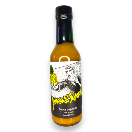 Sauce aromatique à l'ananas, cumin et piment scotch bonnet. Bien balancée entre les fruits, les épices et le piment. Parfaite pour la nourriture asiatique!